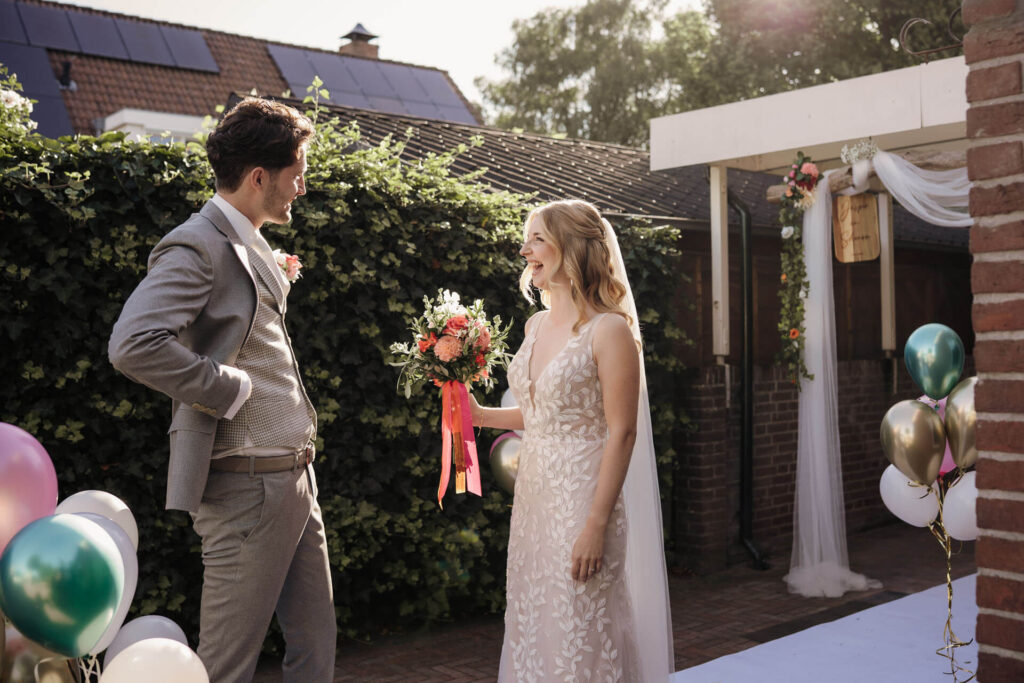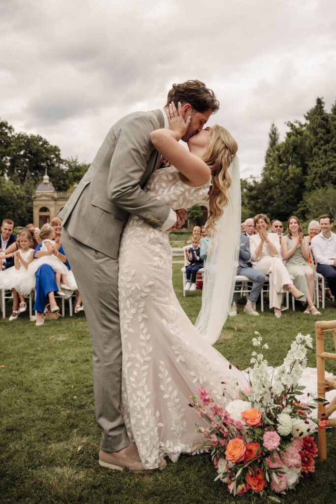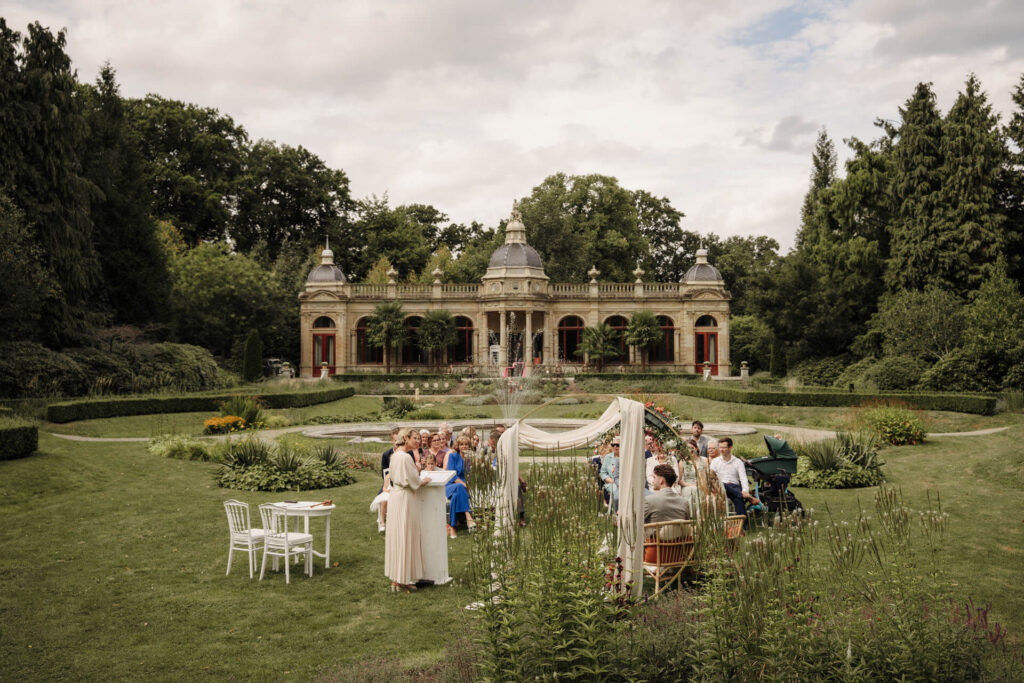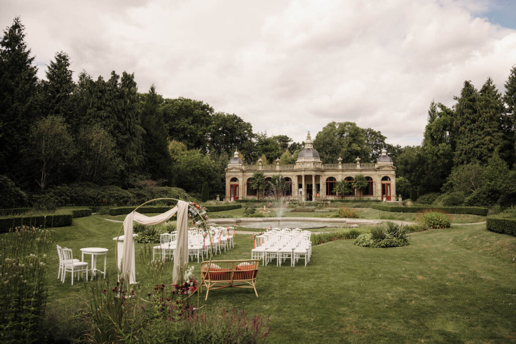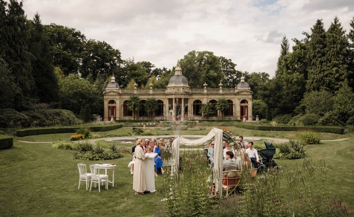De zomerse trouwdag van Jasper & Shanon bij Oranjerie Hydepark in Doorn. Een prachtige trouwlocatie op de Utrechtse Heuvelrug. Deze heerlijke augustusdag stond volledig in het teken van kleur, palmbomen en een ontspannen zomerse sfeer, perfect passend bij het bruidspaar.